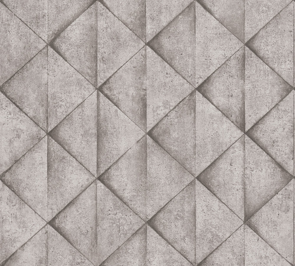 Grå vinyltapet i triangelmönster med struktur. Vinylmaterial gör att tapetens avtorkningsbarhet är hög.