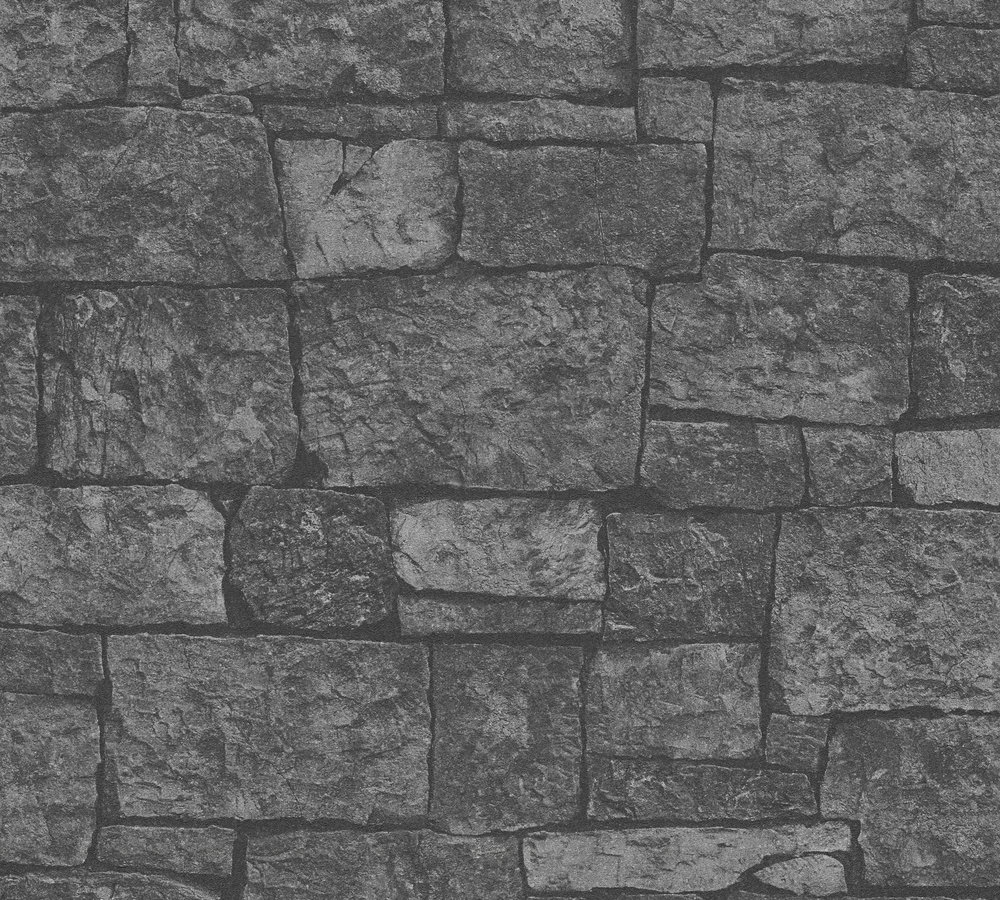 Tapet föreställande mörkgrå stenvägg med struktur. Ytan på tapeten är i vinyl vilket gör att avtorkningsbarheten är hög.