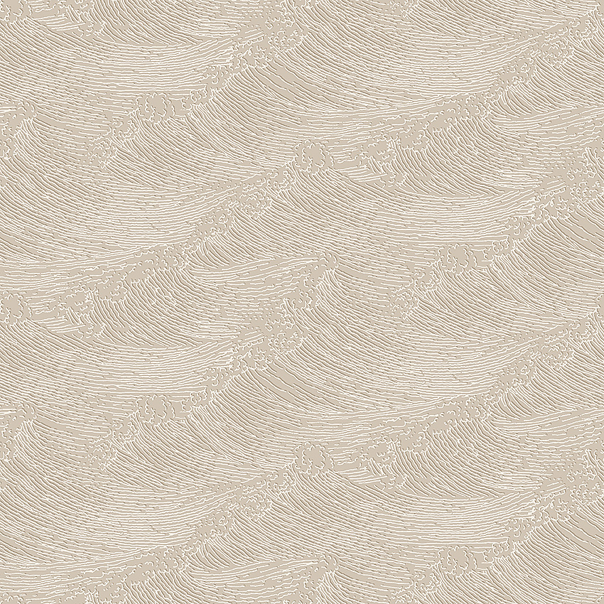 Tapeten The Wave har ett böljande mönster av stiliserade vågor i vitt och mörkbeige mot en len, lerbeige botten. Den levande mönsterbilden är uppbyggd av en mindre rapport som repeteras till ett stort, svallande hav. Lugn dramatik och en härlig naturkänsla! The Wave är tryckt med ett flödigt limtryck, en traditionell teknik som gör att mönstret nästan flyter ovanpå pappret. Utöver denna variant i beige toner finns tapeten också i två andra färgställningar.