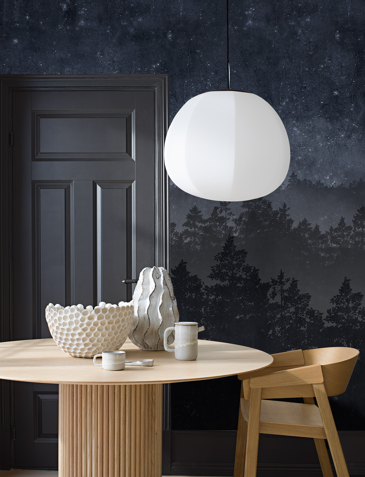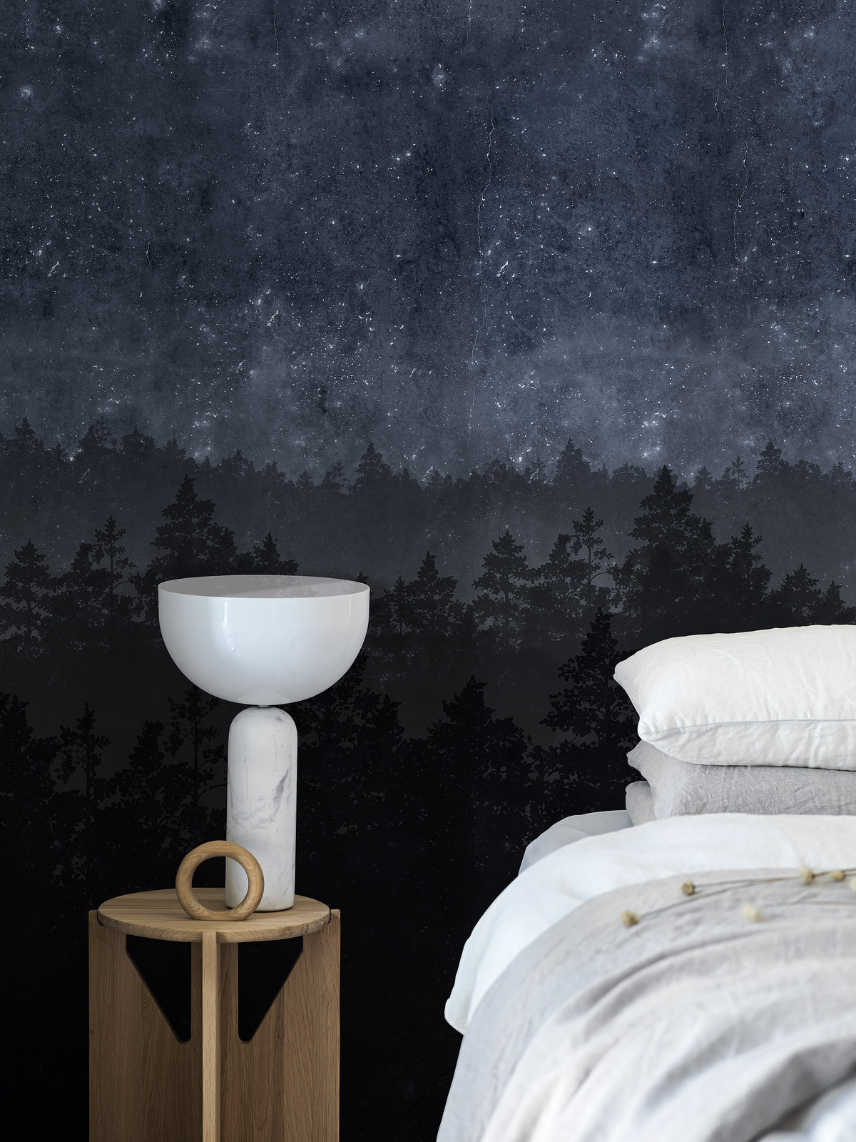 Nordic Night är en fondtapet inspirerad av den nordiska nattens klara stjärnhimmel och dimhöljda, sovande skogar. En dramatisk, storslagen tapet som ändå skapar lugn och harmoni i rummet. Kanske något för sovrummet, vardagsrummet eller tonåringens rum?