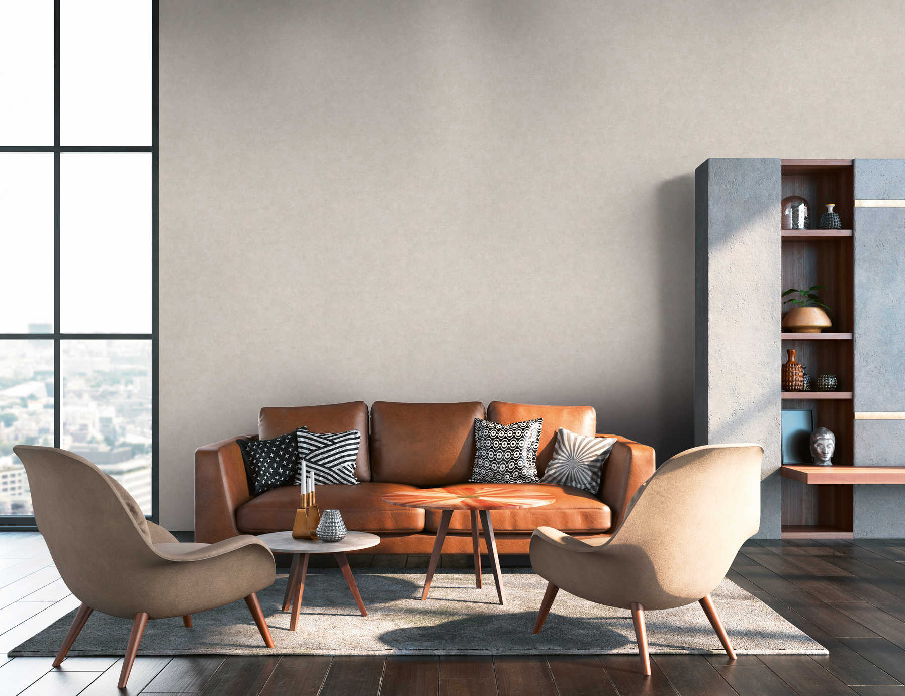 Tapet i ljusgrå/beige nyans med struktur. Ytan på tapeten är i vinyl som är ett tåligt material med hög avtorkningsbarhet.